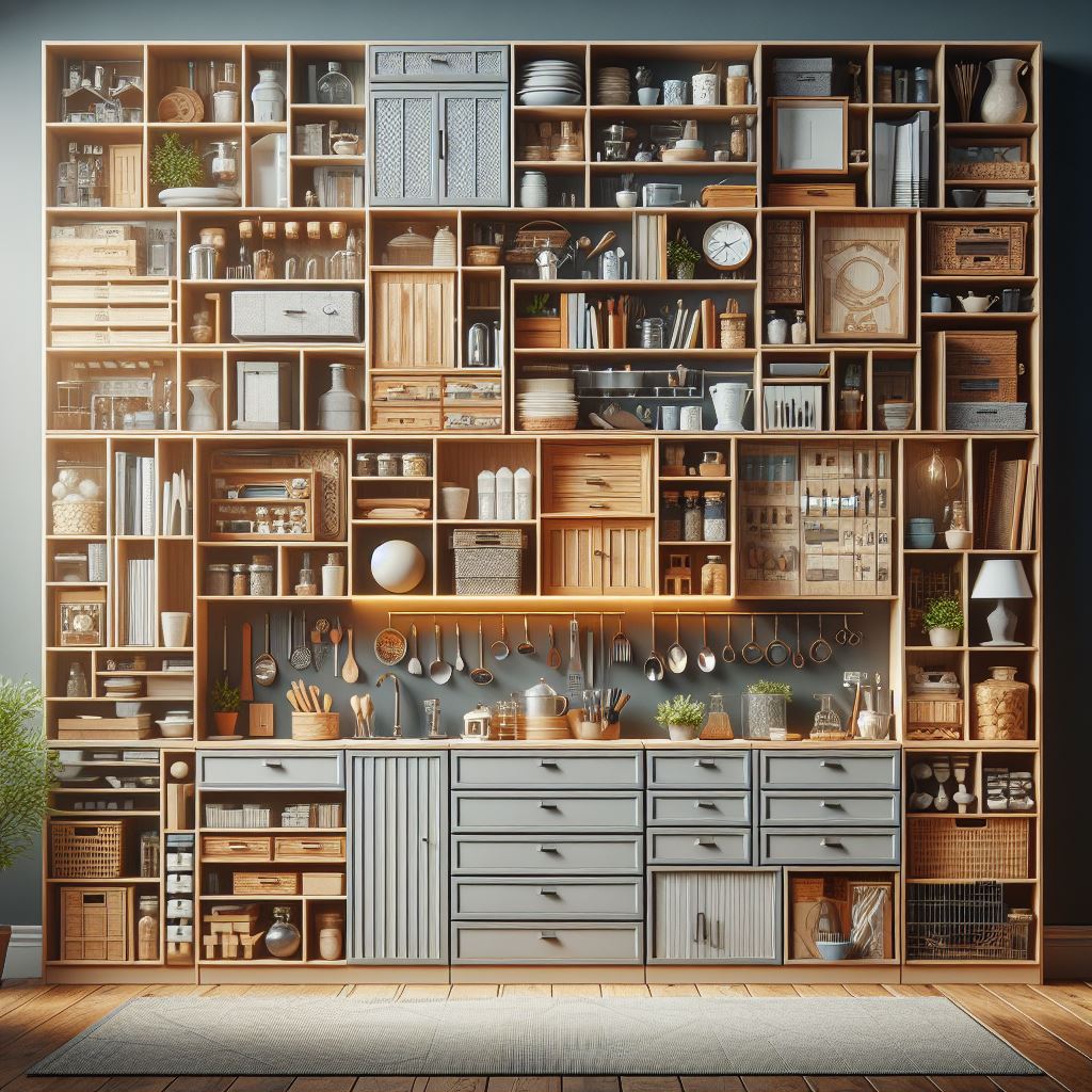1. Kitchen Cabinets: Designed to store food, dishes, and cooking equipment, these are integral to kitchen design, contributing to both the functionality and style of the space.